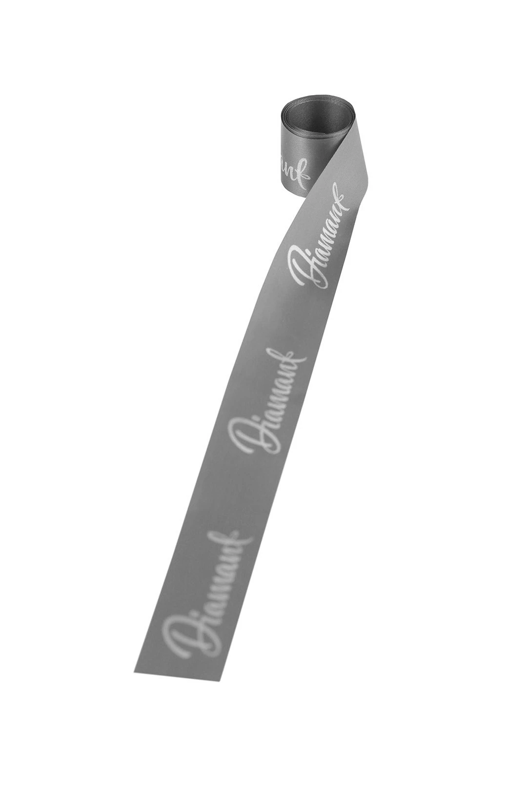 Лента сатин ширина 3 см серая, печать серебром с одной стороны