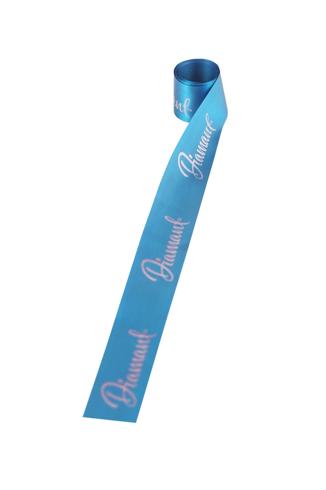 Лента сатин ширина 3 см голубая, печать серебром с одной стороны