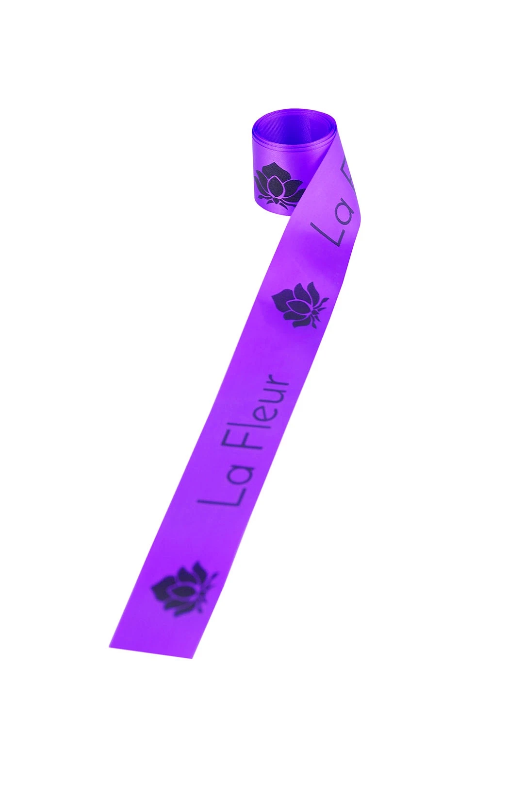 Лента сатин ширина 3 см фиолетовая, печать черным с одной стороны