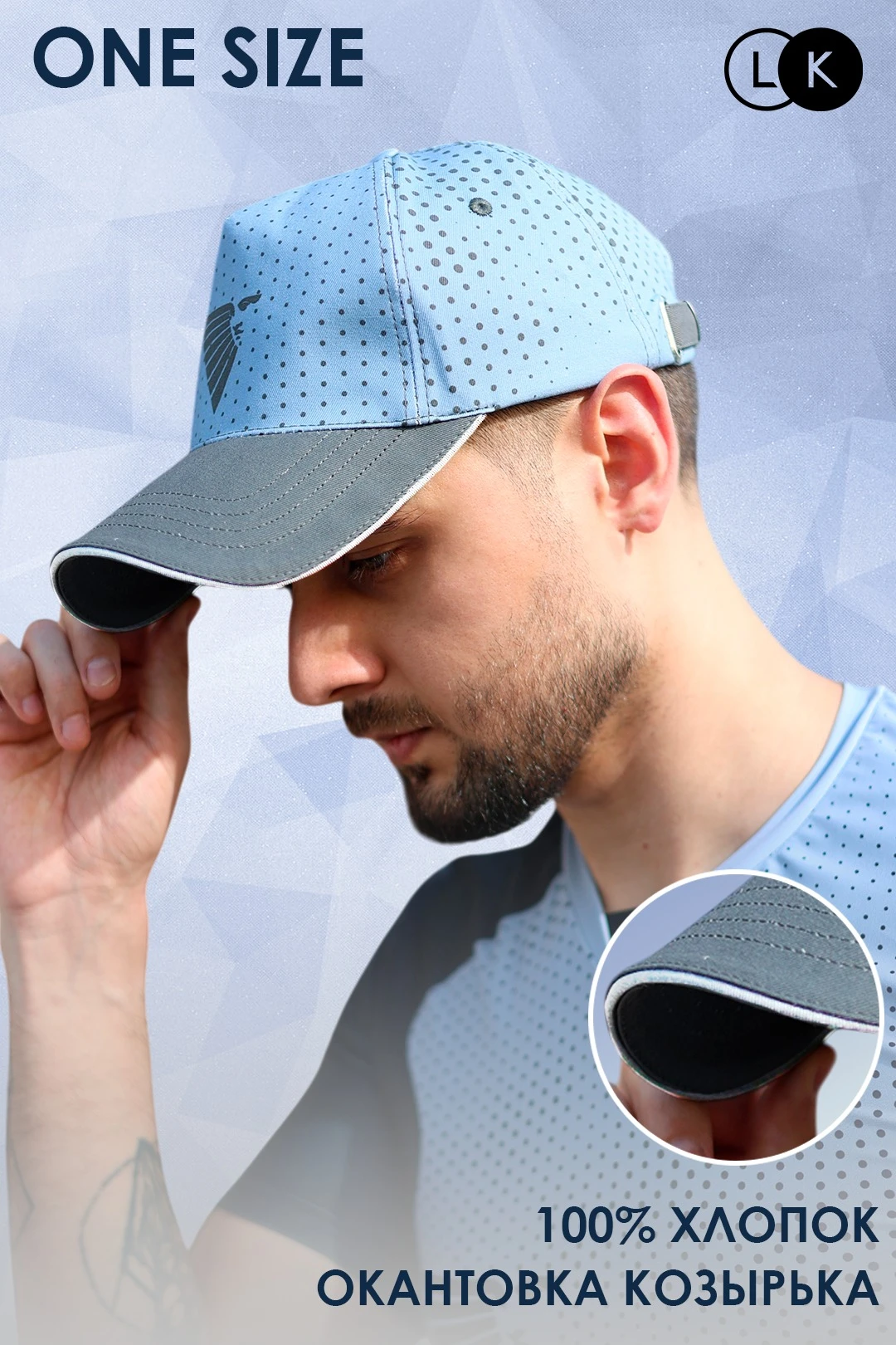 Ярлык. Модель брендируется биркой "LK". Бирка белого цвета, пришивается во внутренний шов бейсболки. По желанию клиента ярлык с биркой "LK" может не пришиваться, но при этом идет бирка с размером. Также вы можете заказать за дополнительную плату свой фирменный ярлык.