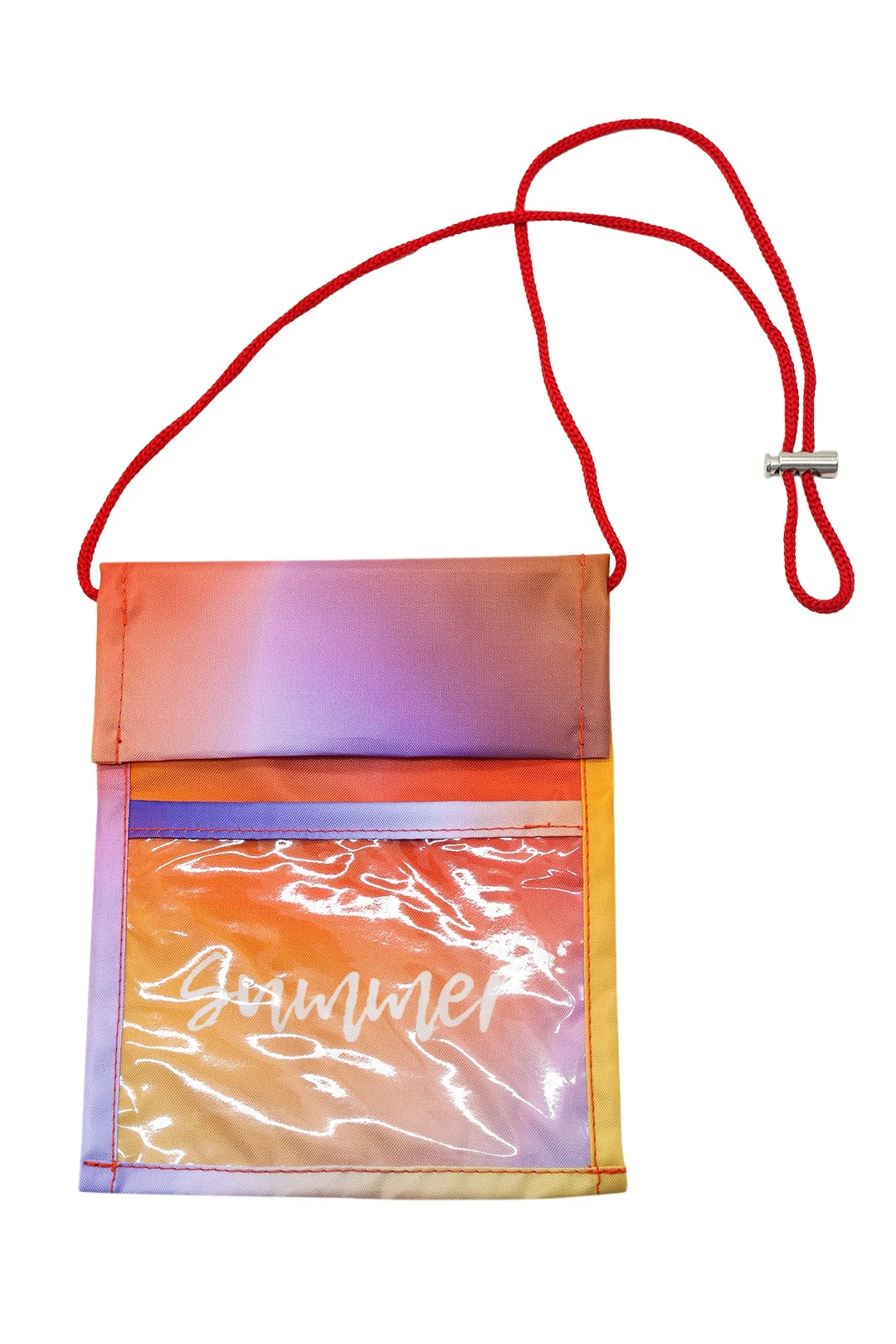 Модель: Кошелек прямоугольной формы с двумя отделениями. Имеет основное отделение и карман из прозрачной пленки. Лямка на шею из шнура 4 мм, с фиксатором.