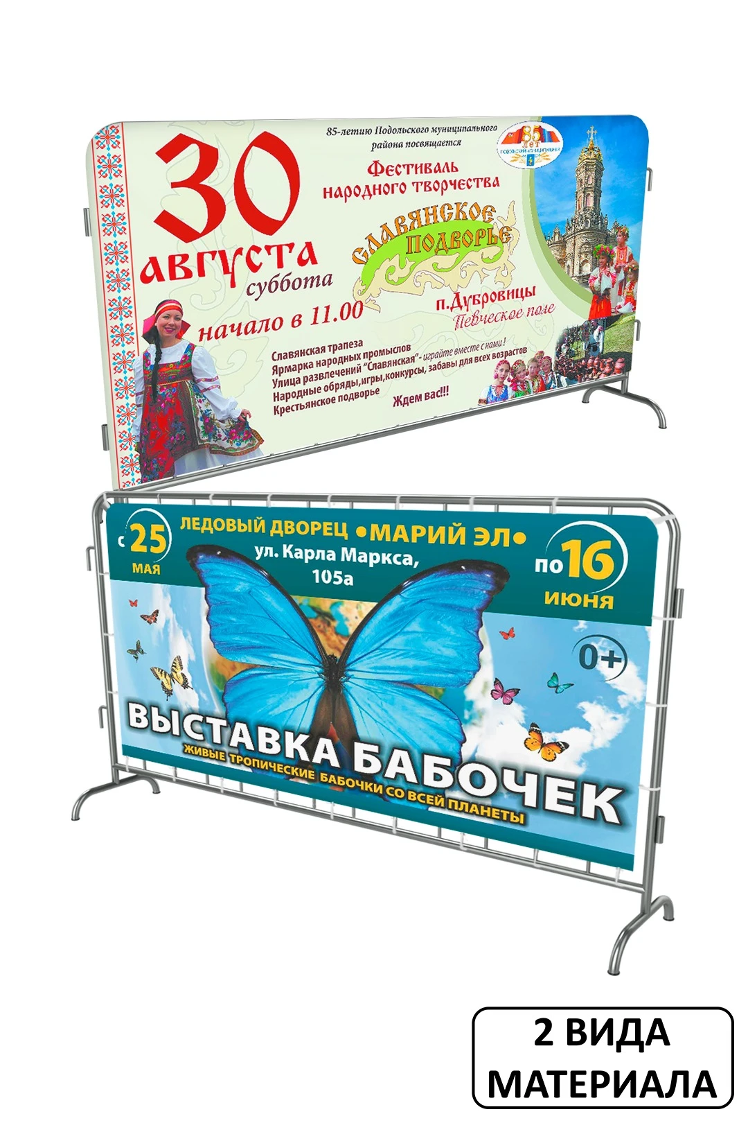Фан-барьер - это мобильное заградительное ограждение, временный забор, для разделения пространства. Используется для ограждения мест проведения мероприятия от зрителей и фанатов. Декорирование таких ограждений, это популярная услуга, которая организовывает большую рекламную поверхность, для позиционирования бренда.