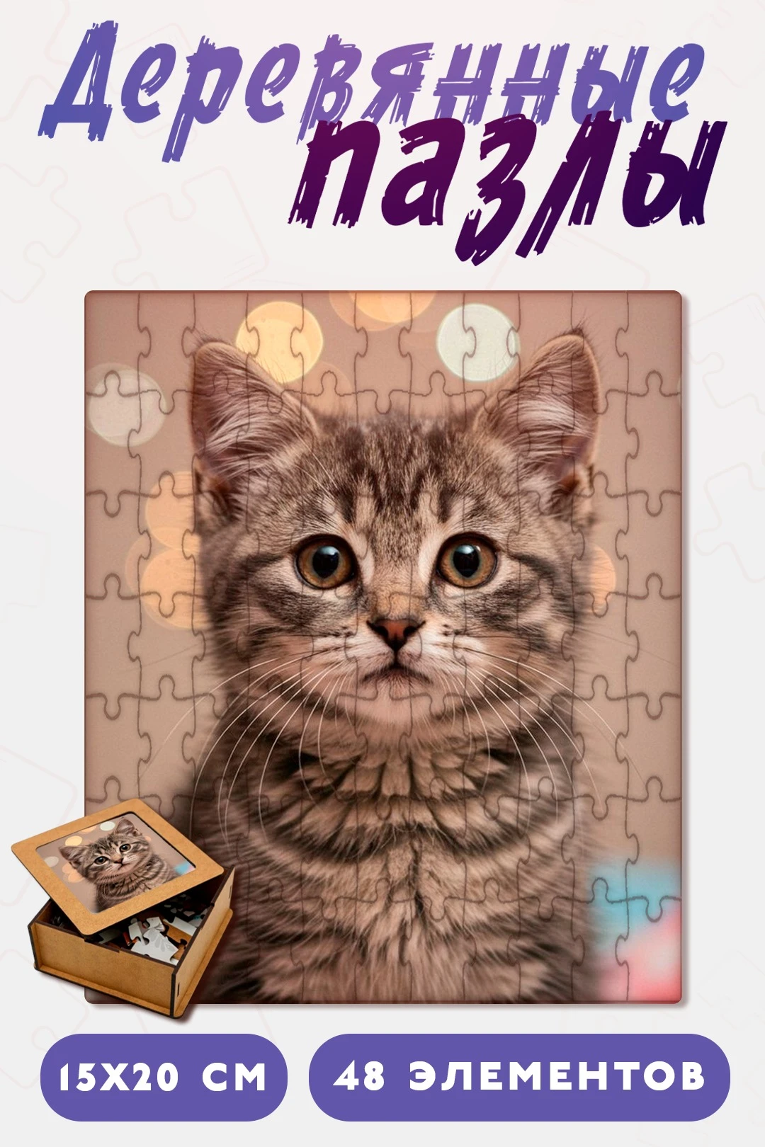 Деревянные пазлы в коробке с крышкой отличаются высоким качеством и долговечностью. Пазл для сублимации с напечатанной фотографией станет отличным развлечением для всей семьи и замечательным подарком для любителей головоломок.