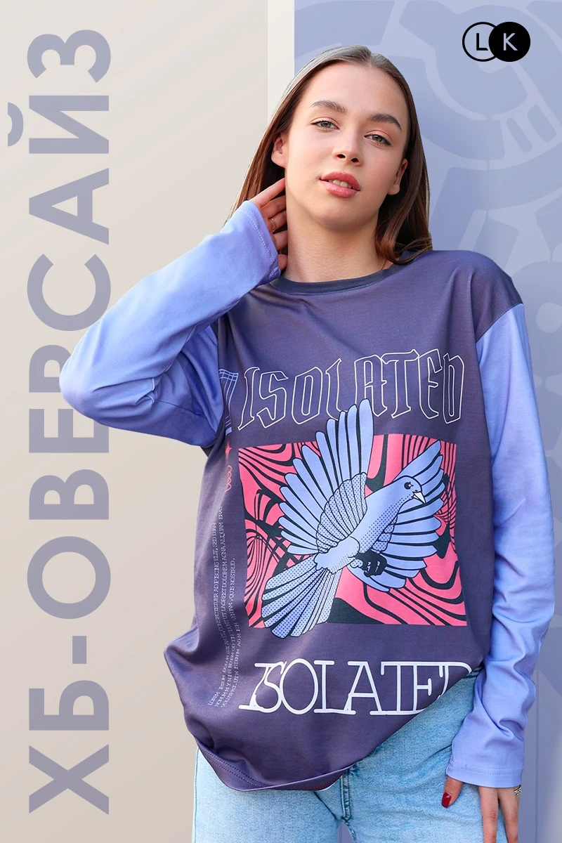 Прямая печать. Полноцветная печать осуществляется на хб материале по всей поверхности лонгслива в процессе производства. Изображение располагается в соответствии с лекалом. Нанесение входит в стоимость лонгслива.