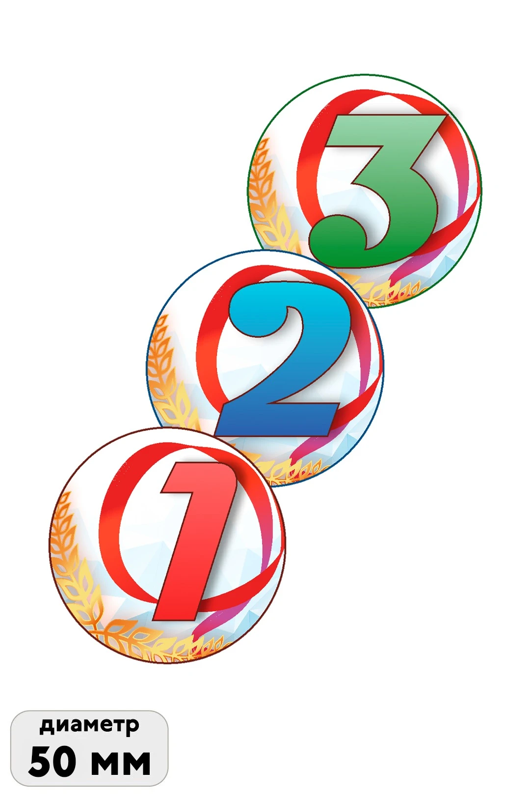 Готовый к использованию вкладыш с ярким и стойким дизайном, выполненным методом сублимационной печати. Идеально подходит для украшения значков, медалей и другой сувенирной продукции.