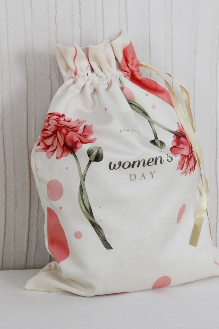Мешочек с полной запечаткой 30х40 см, крепление кулисы на расстоянии от верхнего края "Woman's day"