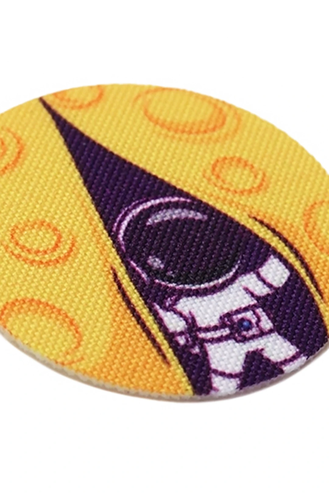 Вид: Наклейка круглой формы, тканевая основа трехслойная. Край наклейки обрезной. Обрезной край получается с помощью вырезания лазером, края изделия заплавляются и не требуют дальнейшей обработки.