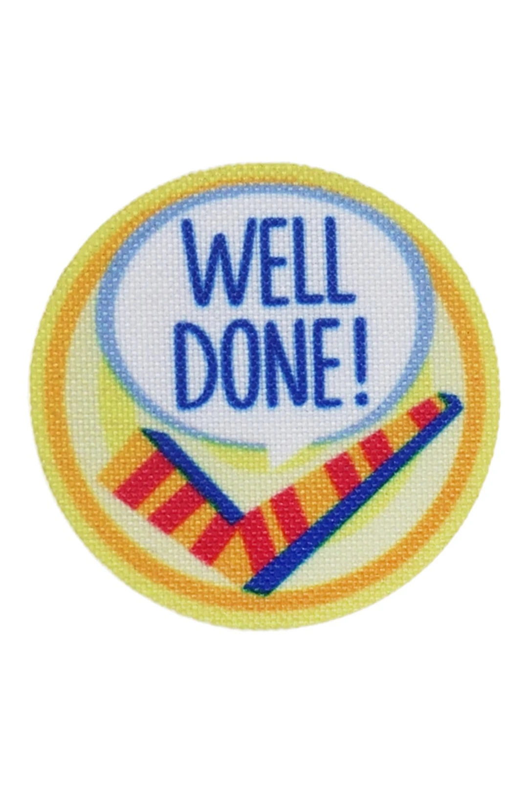 Вид: Наклейка круглой формы, тканевая основа трехслойная. Край наклейки обрезной. Обрезной край получается с помощью вырезания лазером, края изделия заплавляются и не требуют дальнейшей обработки.