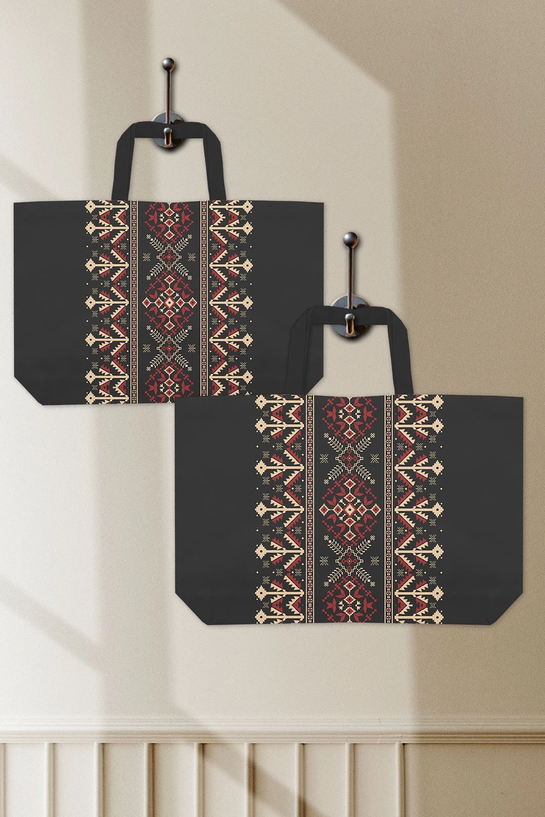 Печать с двух сторон: полноцветная печать осуществляется с двух сторон по всей поверхности сумки, ручки сумки запечатываются фоновой заливкой без элементов дизайна.