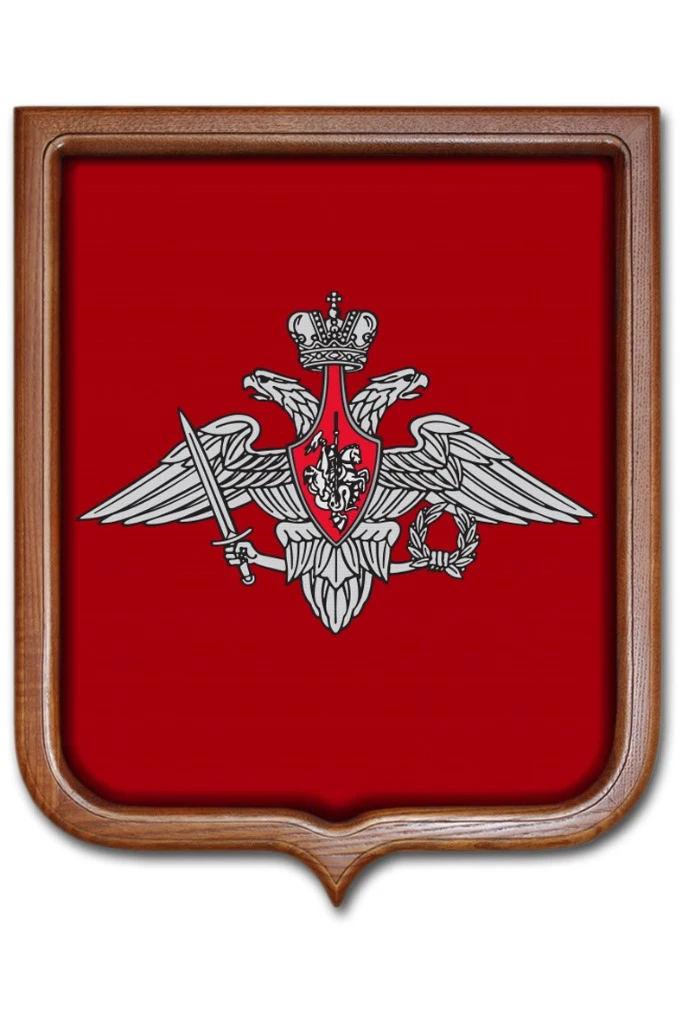 Форма, размер: Герб имеет форму французского щита размером 53х61 см. На оборотной стороне имеется крепление "крокодил" для подвешивания герба на стену.