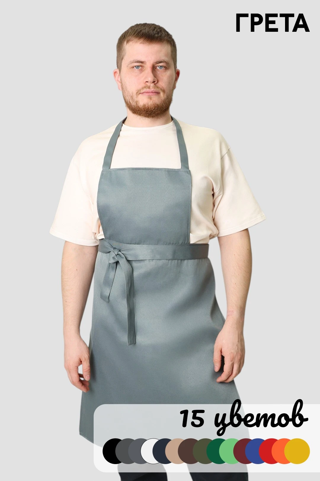 Модель: Фартук фигурной формы без разреза и карманов. За дополнительную плату фартук может быть пошит с одним карманом 20х35 см, либо двумя карманами 17х20 см. Фартук по периметру обработан швом вподгибку. Шейная петля и пояс выполнены из основной ткани. Шейная петля без пластикового регулятора. По желанию клиента шейная петля может быть выполнена с пластиковым регулятором (оплачивается дополнительно). За дополнительную плату фартук может быть удлинен до 15 см.