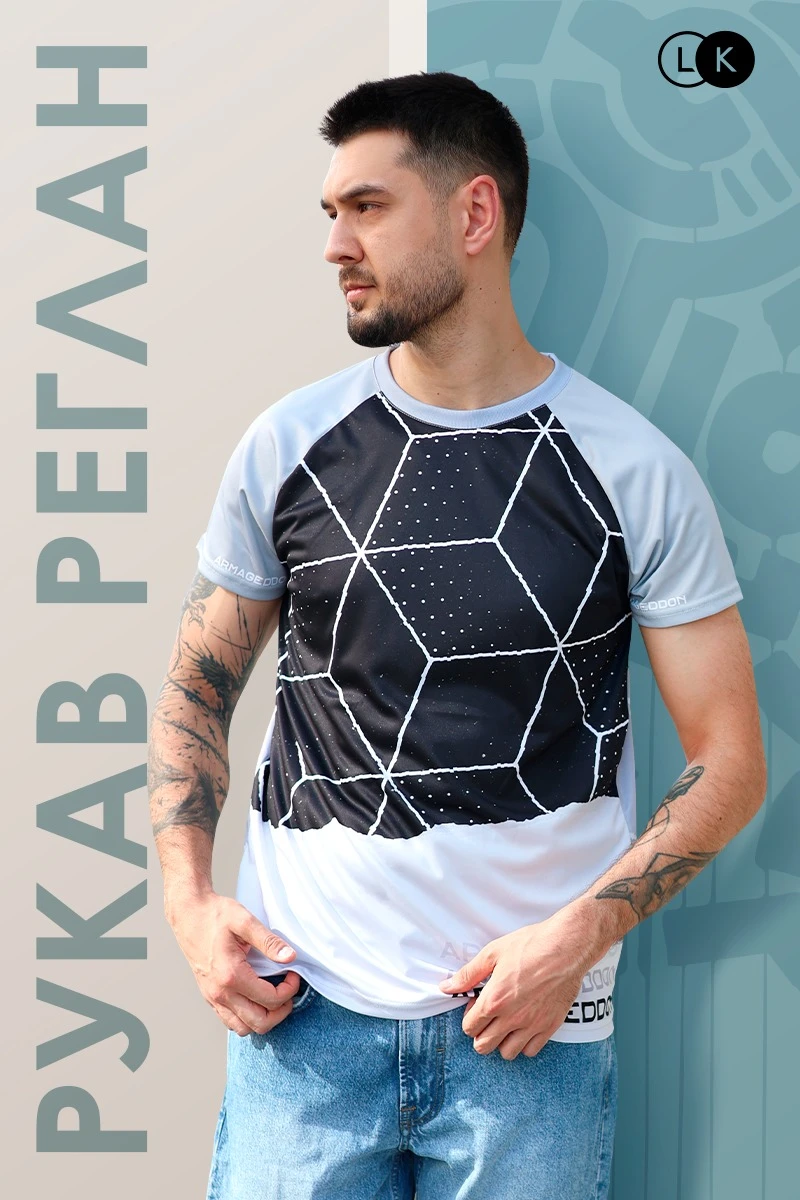 Сублимация. Полноцветная печать осуществляется на всей поверхности футболки в процессе производства. Изображение располагается в соответствии с лекалом. Нанесение входит в стоимость футболки.