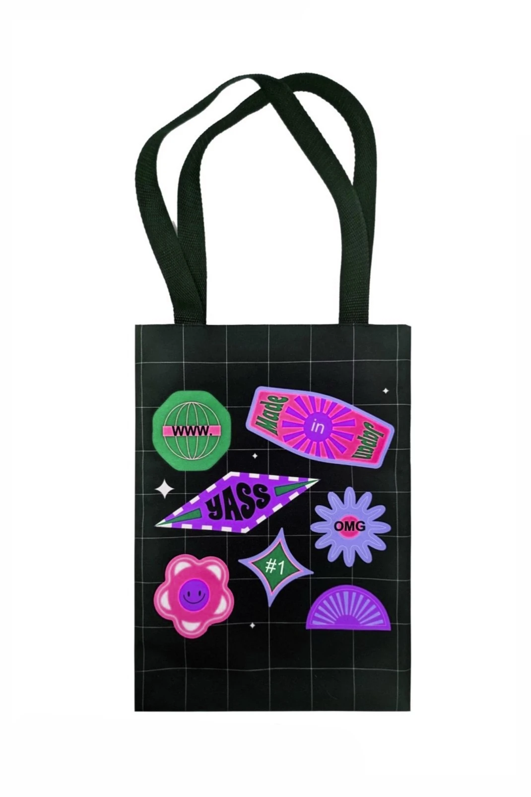 Печать с двух сторон: полноцветная печать осуществляется с двух сторон по всей поверхности сумки, ручки сумки выполнены из цветной стропы шириной 3 см без элементов дизайна.