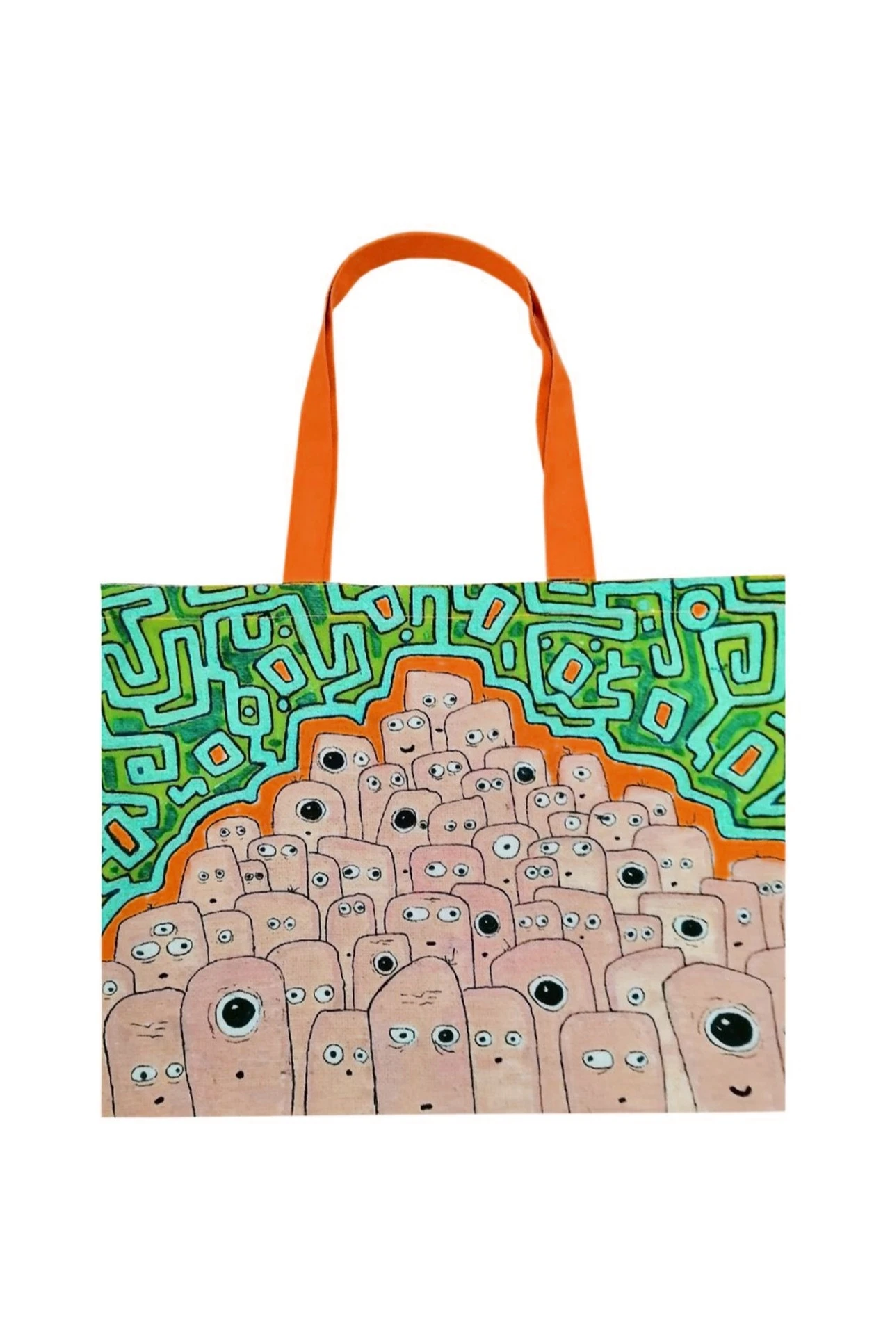 Печать с двух сторон: полноцветная печать осуществляется с двух сторон по всей поверхности сумки, ручки сумки запечатываются фоновой заливкой без элементов дизайна.
