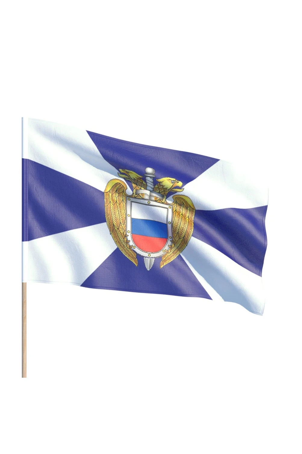 История и символика. Флаг Федеральной службы охраны РФ – это полотно прямоугольной формы. Флаг двусторонний – рисунок на обеих сторонах, лицевой и оборотной, одинаковый. На полотнище изображен светло-синий (васильковый) крест с четырьмя расширяющимися концами, углы между концами креста – белоснежного цвета. В центре флага мы видим геральдическую военную эмблему Федеральной службы охраны РФ. Размер полотнища флагов – классический, где ширина составляет две трети его длины.