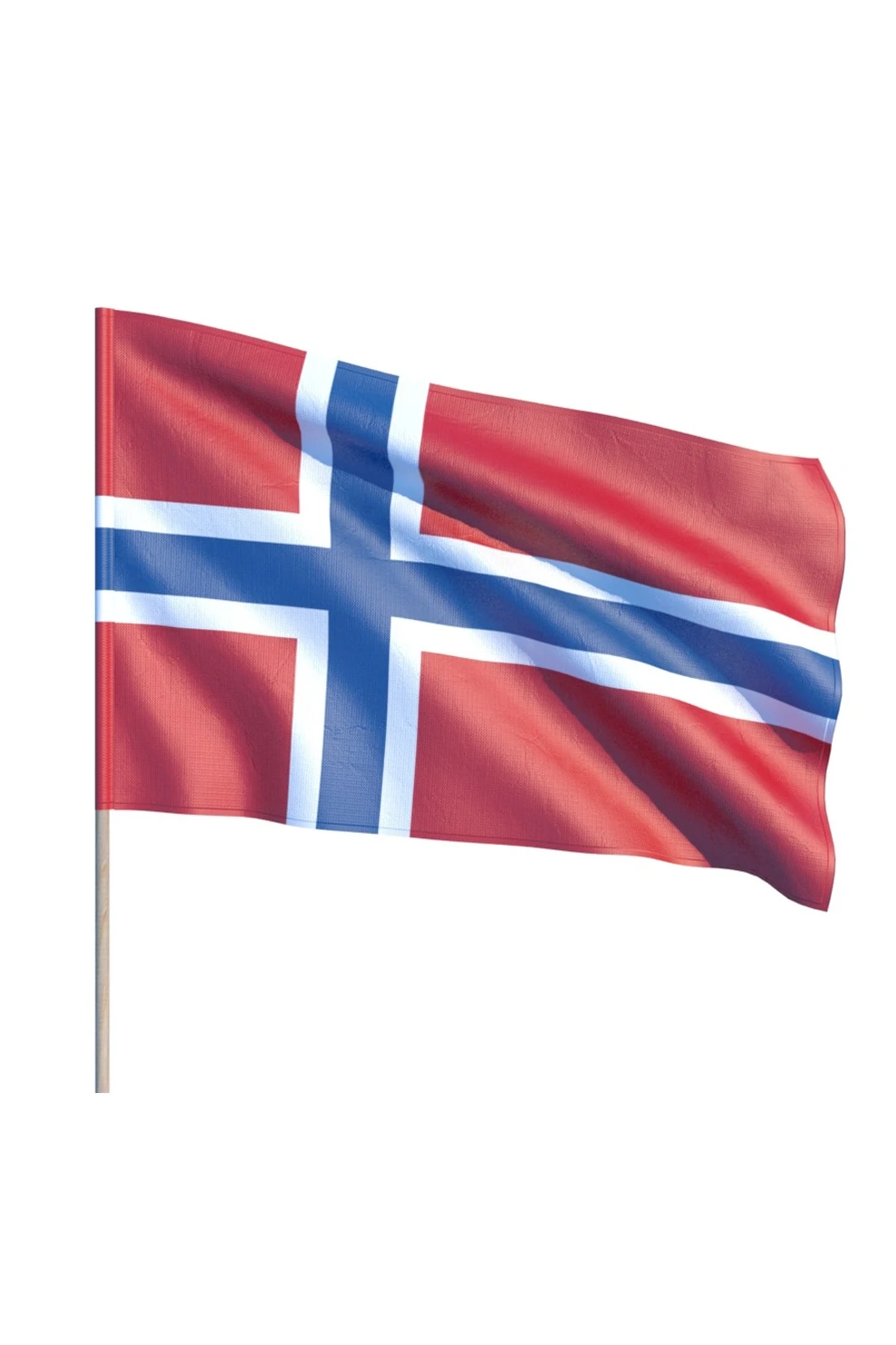 Флаг государства Норвегия представляет собой основание алого цвета, на нем имеется изображение креста, оно - темно-синего цвета. Центр креста смещен немного влево, в направлении древка. Простирающийся по всей ширине и длине флага синий крест, имеет белоснежное обрамление. Использованные цвета не случайны - они символизируют свободу. Цвета заимствованы у флагов США, Великобритании, Франции и Нидерландов. Красный и синий цвета указывают на общую историю страны со Швецией и Данией.