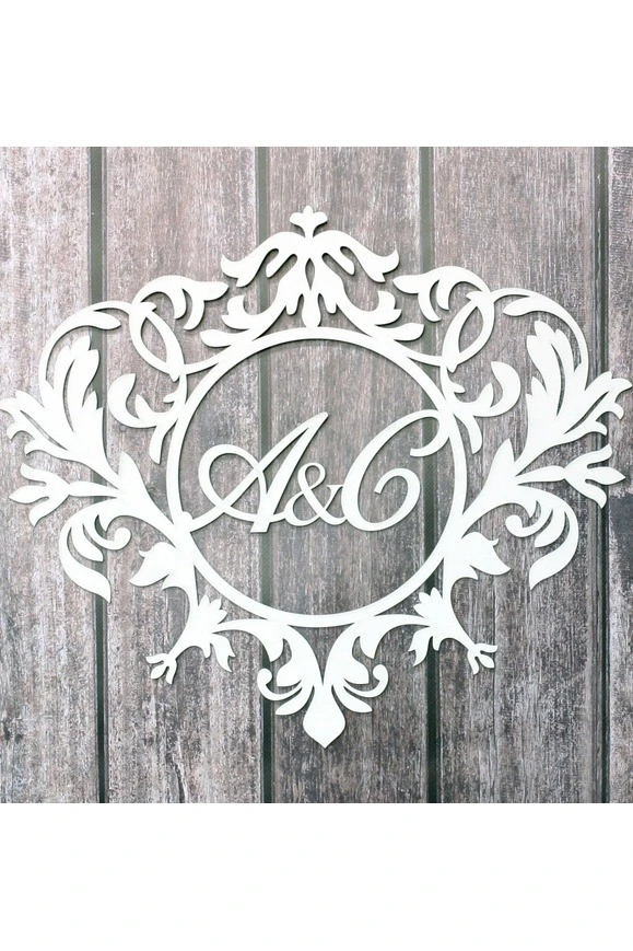Монограмма на свадьбу из дерева 37*43,5 см, с инициалами в круге с вензелями