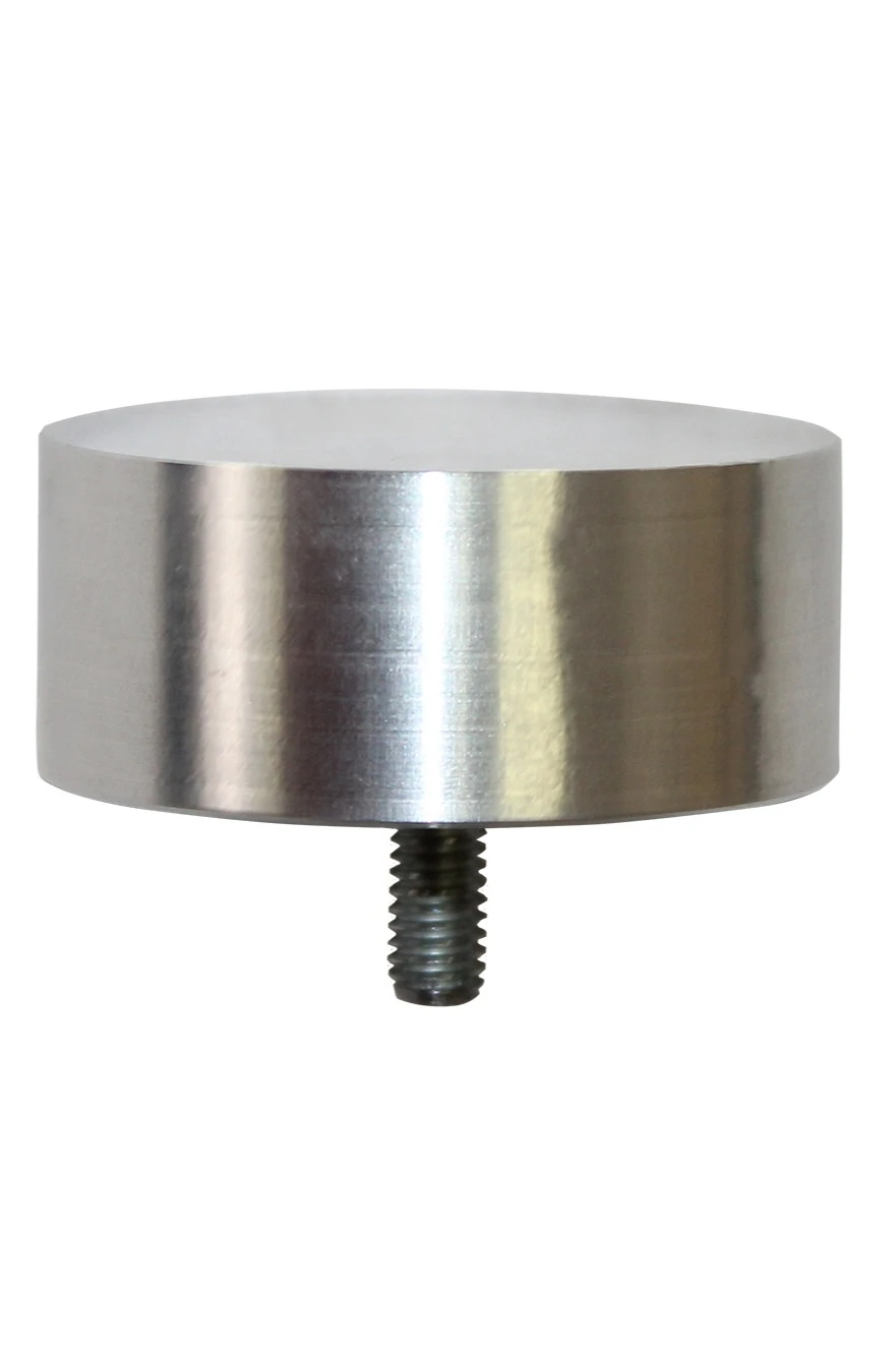Комплектация, форма, размер. Навершие имеет цилиндрическую форму. Высота навершия составляет 2 см, диаметр - 4,8 см. В центре навершия несквозное отверстие, в которое ввернута шпилька с резьбой М6 длиной 2 см (для крепления к древку). В комплектацию навершия входит пластиковая заглушка с футоркой с внутренней резьбой М6 для металлической трубки диаметром 2,5 см.