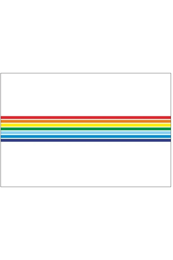 Флаг Еврейской автономной области представляет собой белое прямоугольное полотнище, на горизонтальной оси которого расположена цветная полоса, символизирующая радугу, и состоящая из семи узких горизонтальных полосок: красной, оранжевой, желтой, зеленой, голубой, синей и фиолетовой, ширина каждой из которых равна 1/40 ширины флага, разделенных между собой узкими белыми горизонтальными полосками, ширина каждой из которых равна 1/120 ширины флага.