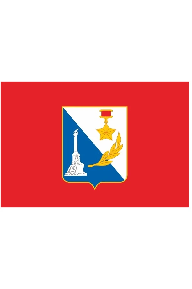Прямоугольное полотнище цвета бордо с соотношением ширины к его длине как 2:3 с помещенным в центре каждой из сторон полотнища гербом города-героя Севастополя, выполненным в цветном изображении согласно официальному описанию герба. Габаритная ширина изображения герба на флаге составляет 2/5 части от длины полотнища флага.