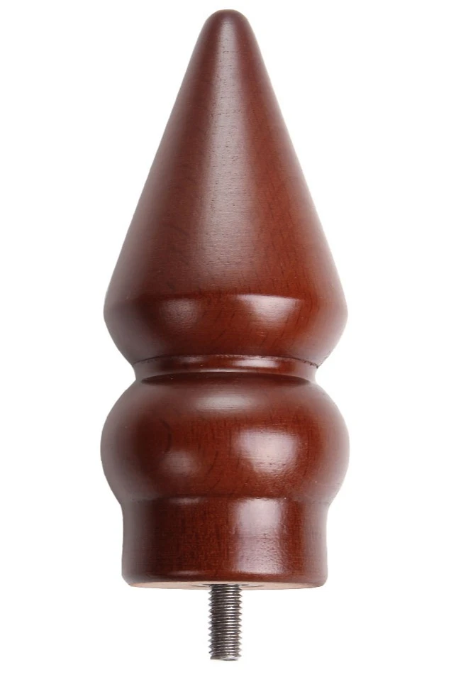 Комплектация, форма, размер. Стандартная форма навершия – конус (длина - 10 см, диаметр у основания - 3,5 см, максимальный диаметр - 4 см). Навершие имеет у основания шпильку с резьбой М6, с помощью которой навершие крепится к древкам.