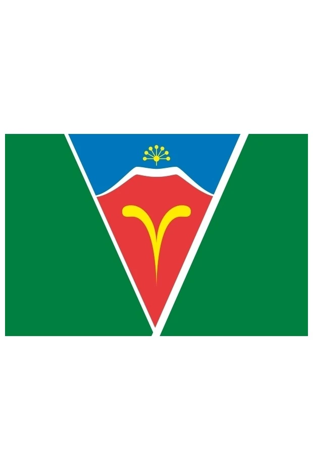 Прямоугольное полотнище с соотношением ширины к длине 2:3, воспроизводящее композицию герба города Ишимбая в зелёном, красном, синем, белом и жёлтом цветах.
