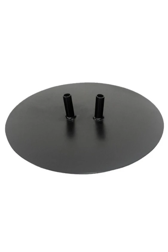 Основание Диск 2 штока изготовлено из стального листа толщиной 4 мм, диаметр - 40 см. К основанию приварены металлические трубки диаметром 2 см и длиной 7 см.