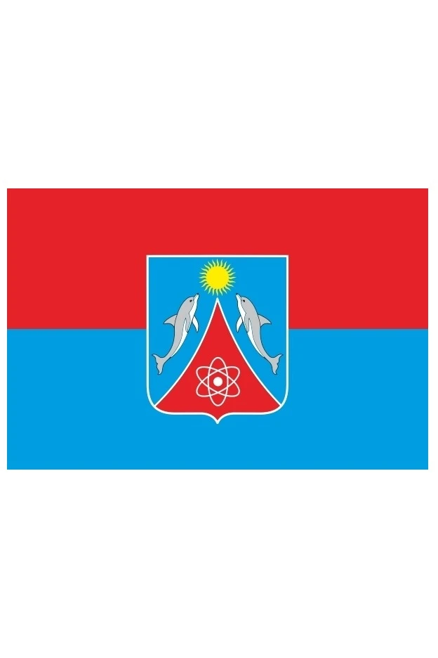 Прямоугольное полотнище с соотношением сторон 2:3 состоящее из двух равновеликих горизонтальных полос красного и голубого цветов. В центре полотнища герб города.