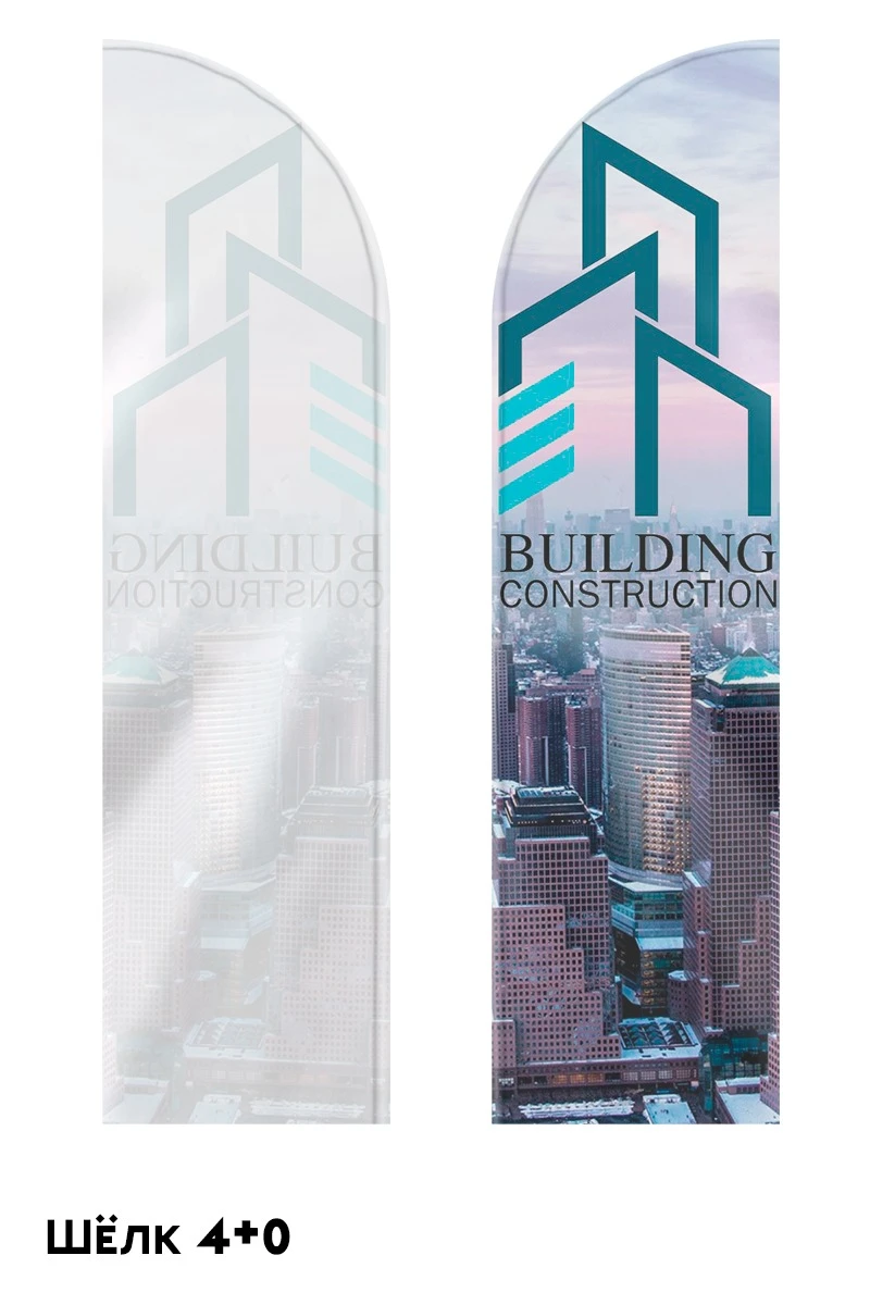 4+4 - печать с двух сторон. Для флагов из шелка, сетки-100 и сетки-150 макеты на обороте должны быть зеркальными от лицевой стороны, так как эти ткани просвечивают.