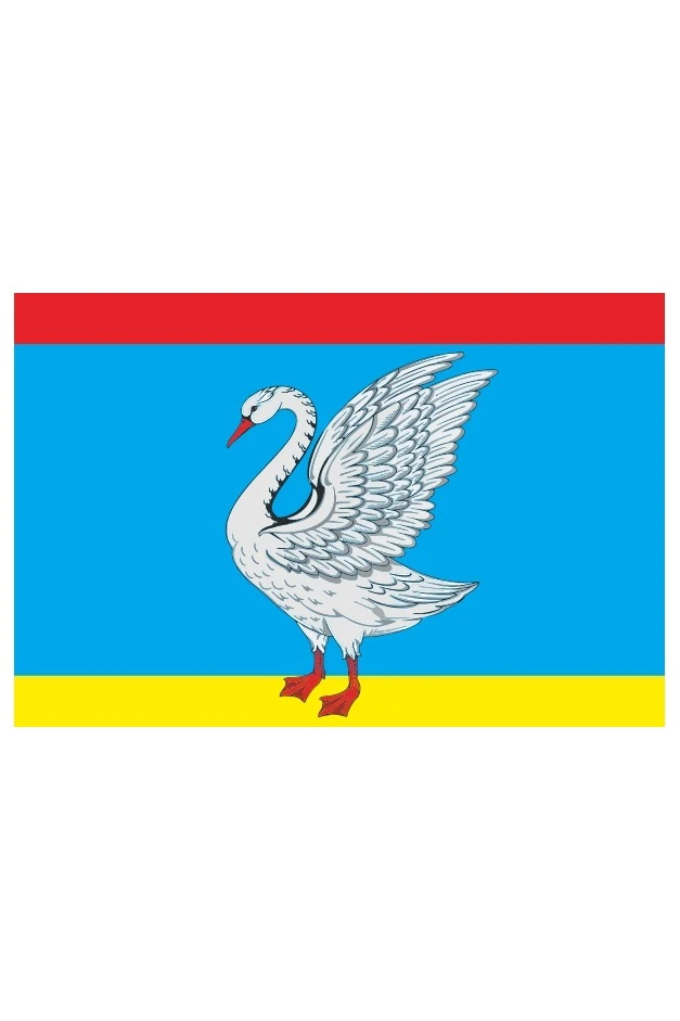 Прямоугольное полотнище с отношением ширины к длине 2:3, состоящее из трёх горизонтальных полос: красной, голубой и жёлтой (в соотношении 1:5:1) и несущее изображение лебедя из герба городского поселения, выполненное белым, чёрным, жёлтым и красным цветами.