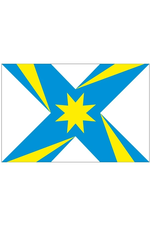 Прямоугольное двухстороннее полотнище белого цвета с отношением ширины к длине 2:3, воспроизводящее голубым и жёлтым цветом фигуры из герба Адреевского городского поселения: Андреевский крест с плечами, обременёнными жёлтыми лучами и жёлтую восьмилучевую звезду в центре полотнища.