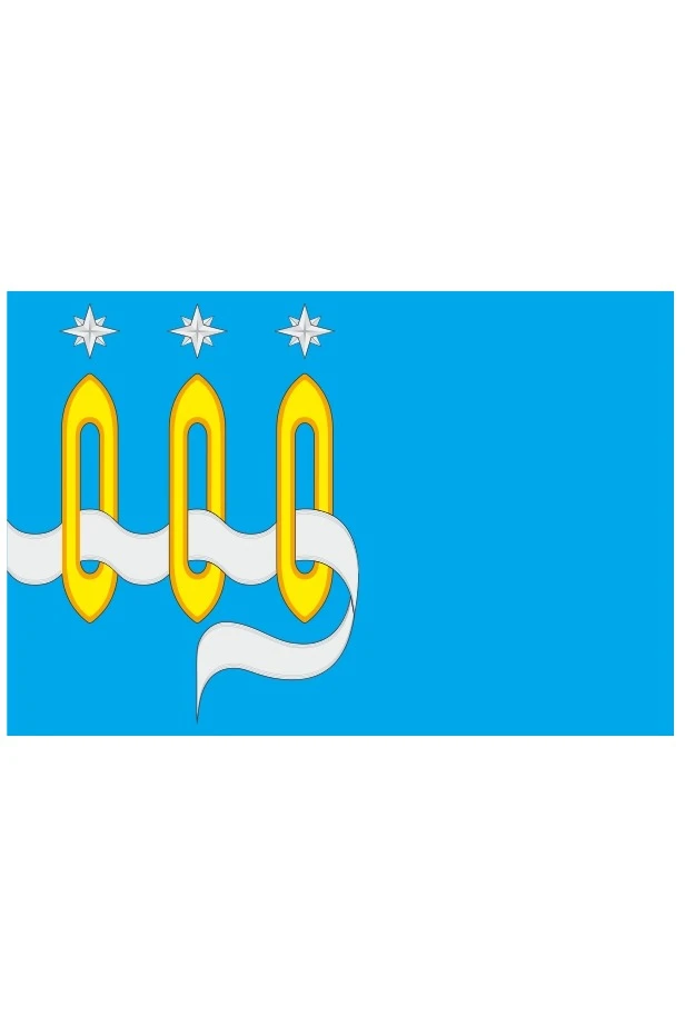 Прямоугольное синее двустороннее полотнище с отношением ширины к длине 2:3, несущее фигуры герба, воспроизведённые со смещением к древку белым и жёлтым цветом: три стилизованных ткацких челнока, соединённых лентой и над ними три звезды.