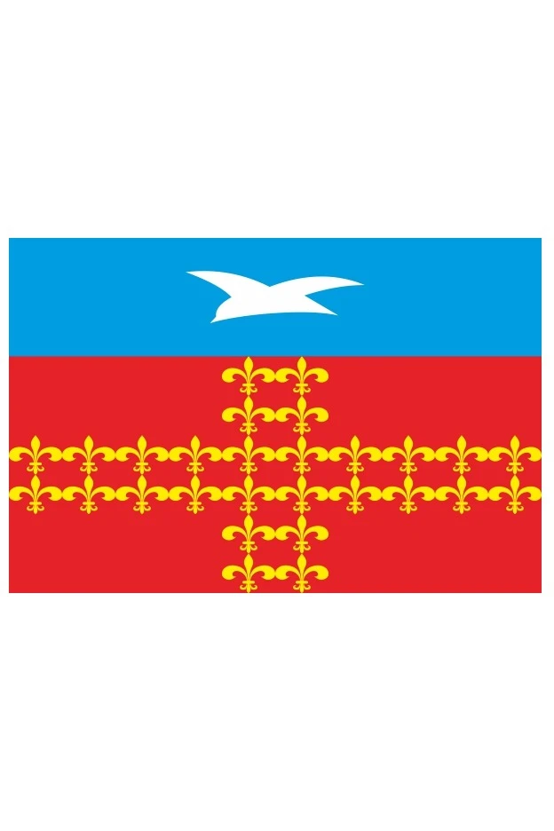 Прямоугольное полотнище с отношением ширины к длине 2:3, несущее вдоль верхнего края голубую полосу в 1/3 полотнища, посередине которой расположено белое стилизованное изображение чайки, а на основной, красной части полотнища — жёлтый узорный симметричный крест, образованный соприкасающимися силуэтами геральдических лилий, причём каждое плечо креста образовано двумя рядами лилий (всего — 28 лилий, по 4 в каждом из вертикальных плеч креста и в его центральной части, по 8 — в каждой из горизонтальных плеч; габаритная ширина плеча креста — 2/9 ширины полотнища.