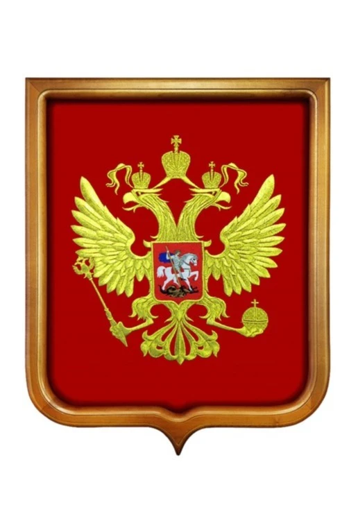 Герб России с вышивкой - отличный предмет интерьера для украшения кабинета, а так же прекрасный подарок для чиновника или руководителя организации.