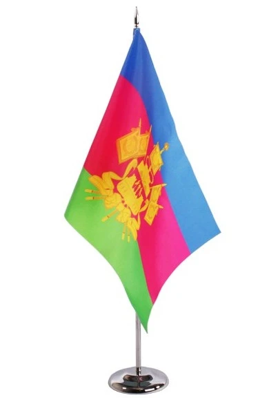 Флажок из атласа изготавливается из одного слоя, либо двух слоев ткани склеенными между собой. Нанесение выполнено методом сублимации.