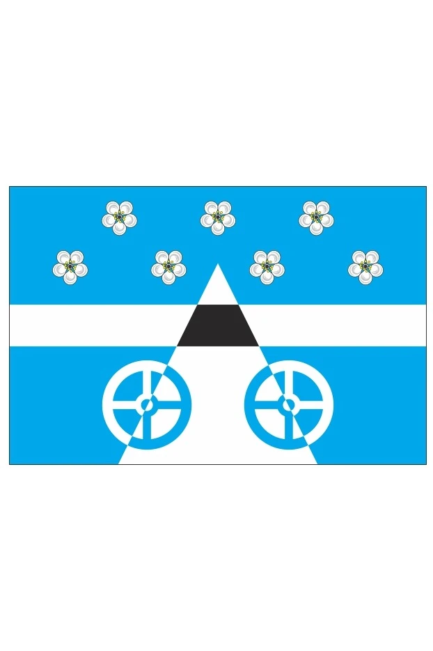 Прямоугольное полотнище голубого цвета с отношением ширины к длине 2:3, несущее в середине горизонтальную полосу белого цвета шириной 3/20 ширины полотнища. На полотнище белым, желтым, черным и голубым цветом воспроизведены фигуры из герба сельского поселения Лопатино.