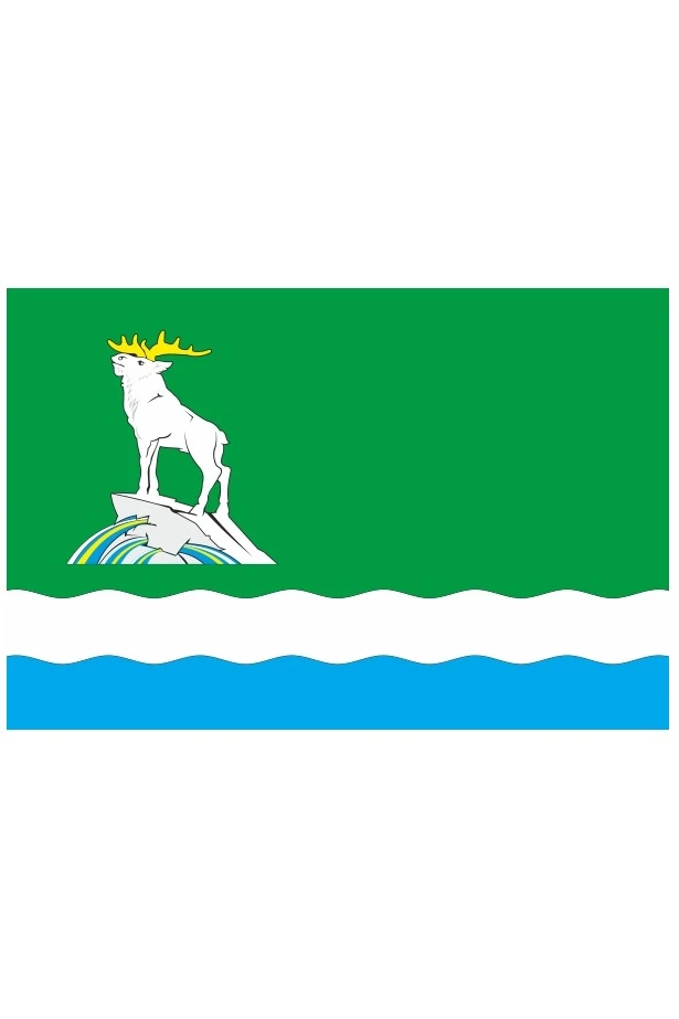 Полотнище с соотношением сторон 3:5, разделённое на три горизонтальные полосы — зелёную, белую и голубую, занимающие соответственно 2/3, 1/6 и 1/6 площади полотнища. На зелёной полосе со смещением к древку воспроизведены основные фигуры герба муниципального района — лось на скале и разноцветные струи — в белом, жёлто-золотистом и голубом цвете. Расстояние от древка до центра композиции с лосем на скале составляет 1/4 от длины полотнища; габаритная высота композиции зеркально воспроизводит лицевую.