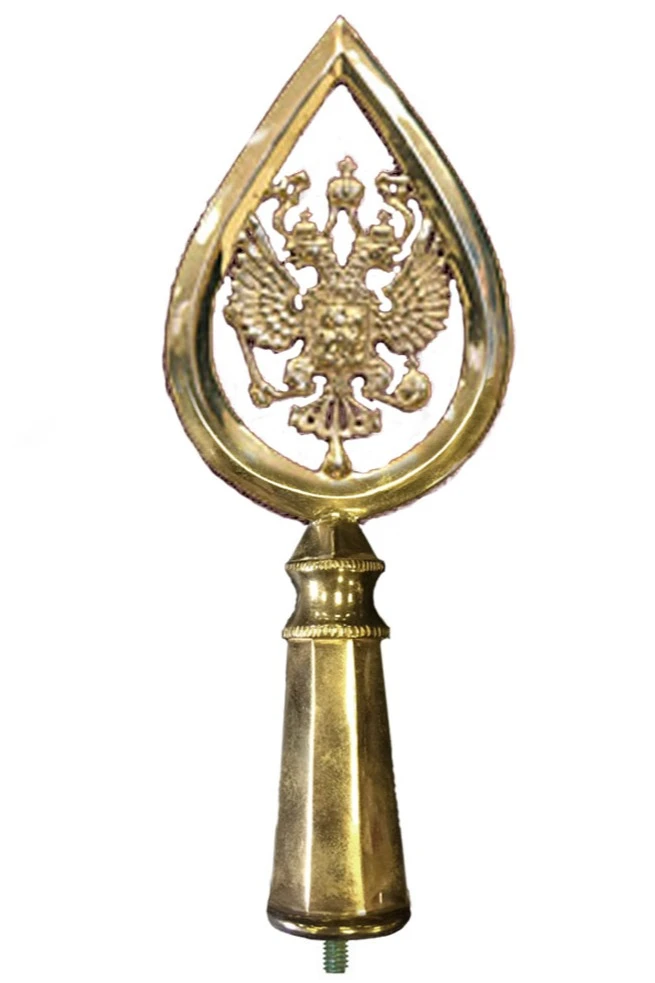 Позолоченное металлическое навершие с гербом РФ используется в качестве гармоничного дополнения к российскому триколору. Оно размещается поверх флага, венчая собой общую композицию. Главным элементом данного навершия является двуглавый орел, олицетворяющий собой официальный символ российской государственности.