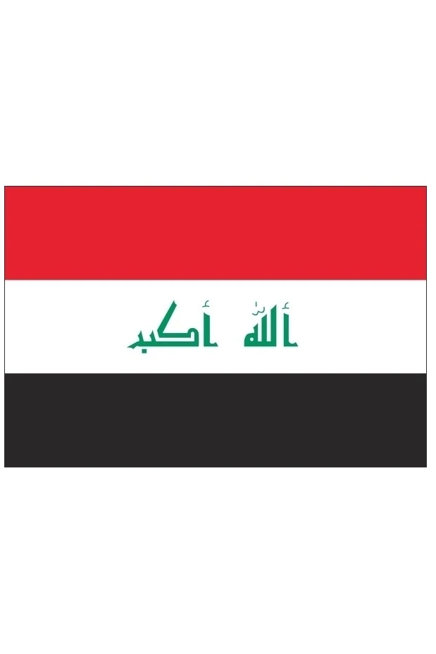 Флаг Ирака представляет собой прямоугольное полотнище с соотношением сторон 2:3. Первый флаг Ирака, утвержденный в 2004 году. Он представляет собой горизонтальные полосы красного, белого, черного (сверху вниз) цветов. На белой полосе зеленым написано "Аллах Велик".