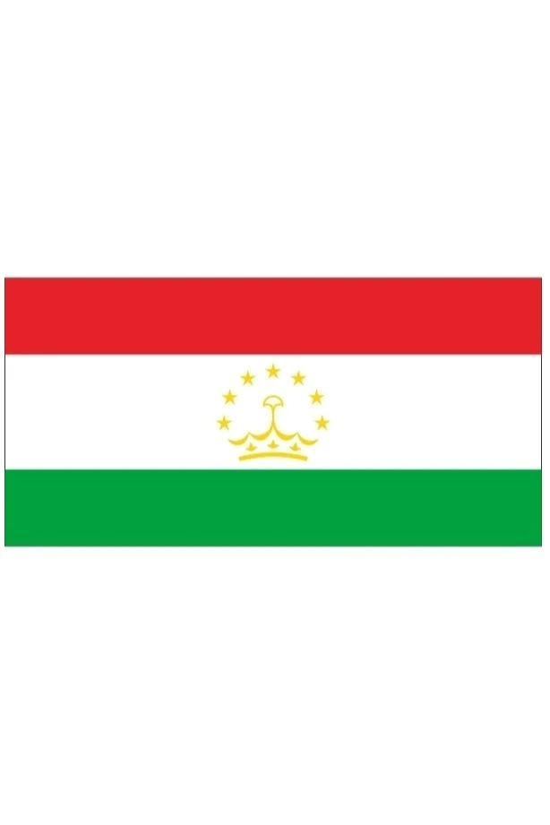Государственный Флаг Республики Таджикистан представляет собой прямоугольное полотнище, состоящее из трёх горизонтальных полос: верхней — красной, средней — белой и нижней — зелёной в соотношении между собой по ширине как 2:3:2. В центре флага изображена золотая стилизованная корона с полукругом из семи пятиконечных звёзд над ней. Корона и полукруг из звёзд вписываются в прямоугольник, длина которого равна ширине белой полосы, а высота которого равна 4/5 ширины белой полосы. Пятиконечные звезды вписываются в условные окружности диаметром 3/20 ширины белой полосы и расположены по дуге условной окружности радиусом 1/2 ширины белой полосы. Корона высотой 0,55 ширины белой полосы прогибается в основании по дуге радиусом 1,2 ширины белой полосы. Четыре дугообразных элемента, формирующие верх короны, венчаются в центре частью круга диаметром 0,2 ширины белой полосы. Отношение ширины флага к его длине — 1:2.