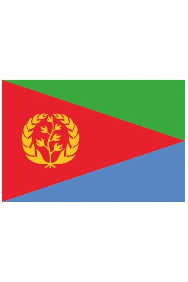 Флаг Эритреи представляет собой прямоугольное полотнище, состоящее из трех треугольников зеленого, красного, синего (сверху вниз) цветов. В центре красного треугольника располагается оливковая ветвь. Красный цвет символизирует кровь, пролитую в борьбе за независимость. Зеленый цвет олицетворяет сельское хозяйство. Синий цвет обозначает большую роль Красного моря и морских ресурсов страны. Желтый цвет – символ природных богатств (в основном минеральных). Флаг имеет соотношение сторон 1:2.