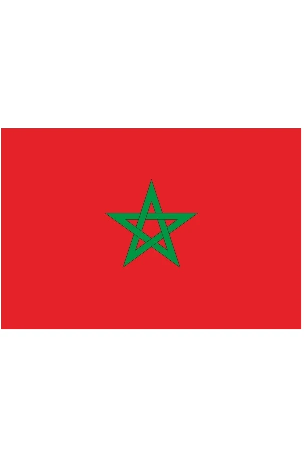 Флаг Марокко представляет собой прямоугольное полотнище красного цвета с зеленой пятиконечной звездой в центре. Флаг имеет соотношение 2:3. Красный цвет имеет давнюю историю. Еще с 17 века флаги государства были красного цвета. Этот цвет символизирует выносливость, стойкость, храбрость. Пятиконечная звезда – символ Соломоновой печати.