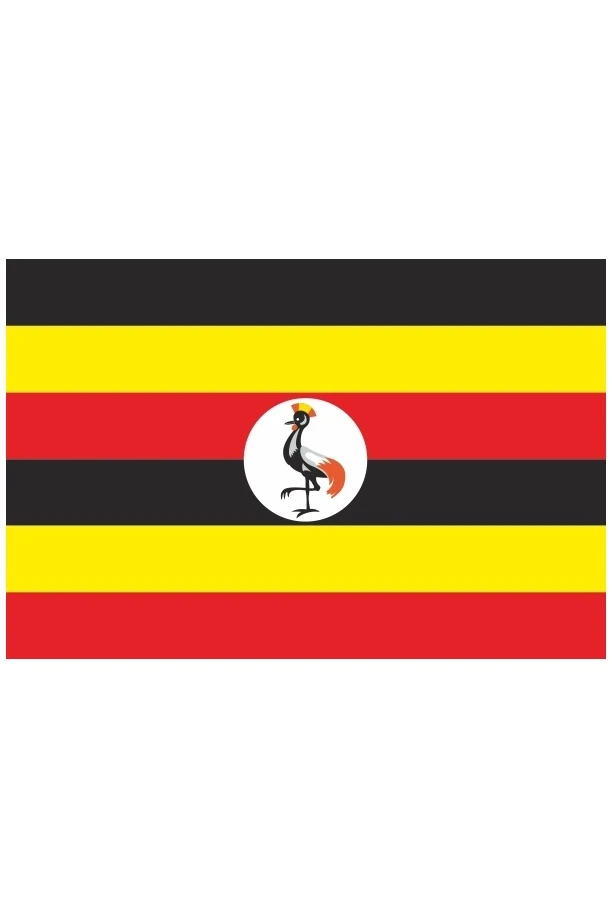 Флаг был утвержден 9 октября 1962 года в момент получения независимости от Британии. На флаге изображены шесть полос одинаковой ширины в следующем порядке (сверху): чёрный, жёлтый, красный, чёрный, жёлтый, красный. В центре флага расположен белый круг с изображением национального символа — восточного венценосного журавля, смотрящего в сторону древка. Полотнище имеет соотношение сторон 2:3.