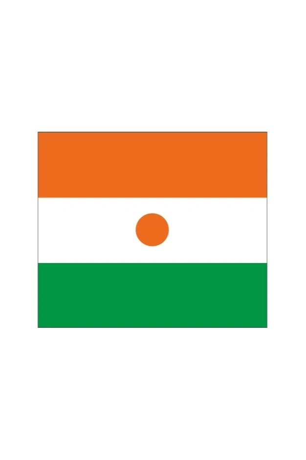 Флаг Нигера представляет собой прямоугольное полотнище с тремя горизонтальными полосами оранжевого, белого, зеленого (сверху вниз) цветов. В центре белой полосы располагается оранжевый круг. Оранжевый цвет означает пески пустыни. Белая полоса – чистота. Зеленая полоса – плодородные земли юга. Круг – символ солнца. Соотношение сторон 6:7.