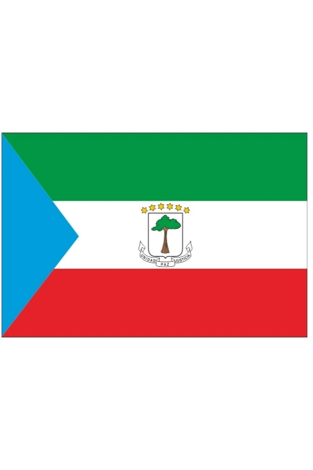 Флаг Экваториальной Гвинеи представляет прямоугольное полотнище с тремя горизонтальными полосами зеленого, белого, красного (сверху вниз) цветов. В середине белой полосы расположен герб государства. У древка расположен синий треугольник. Флаг имеет соотношение 2:3. Зеленый цвет является символом сельского хозяйства. Белый цвет олицетворяет мир. Красный дом является символом крови, пролитой в борьбе за независимость Экваториальной Гвинеи. Синий цвет представляет Атлантический океан.