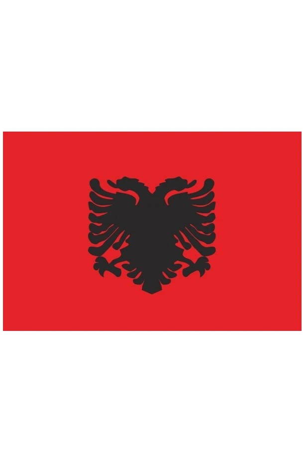 Государственный флаг Республики Албания представляет собой прямоугольное полотнище красного цвета с соотношением сторон 5:7 с чёрным двуглавым орлом из герба Албании в центре. Красный цвет флага — символ крови албанских патриотов, пролитой ими в многовековой борьбе против поработителей (в первую очередь, турецких).