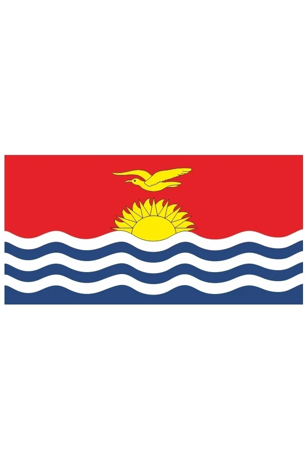 Флаг Кирибати имеет прямоугольную форму и соответствует гербу страны, дарованному островам в 1937 году. Верхняя половина флага имеет красный цвет. На ней изображён фрегат большой (лат. Fregata minor) золотистого цвета, летящий над восходящим солнцем золотистого оттенка. Нижняя половина флага имеет белый цвет с тремя синими горизонтальными волнистыми полосами, символизирующими волны океана.
