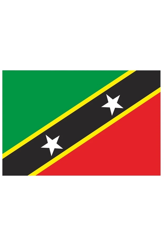 Флаг Сент-Китса и Невиса представляет собой прямоугольное полотнище зелено-черно-красного цветов, расположенных по диагонали. В центре черной полосы изображены две белые пятиконечные звезды. Между полосами присутствуют две желтые узкие полоски. Зеленый цвет олицетворяют плодородные земли. Красный цвет означает борьбу народа за независимость. Черный цвет символизирует чернокожих жителей страны. Белые звезды означают надежду и свободу. Желтый цвет на флаге символизируют солнечный свет. Флаг был принят 19 сентября 1983 года. Имеет соотношение сторон 2:3.