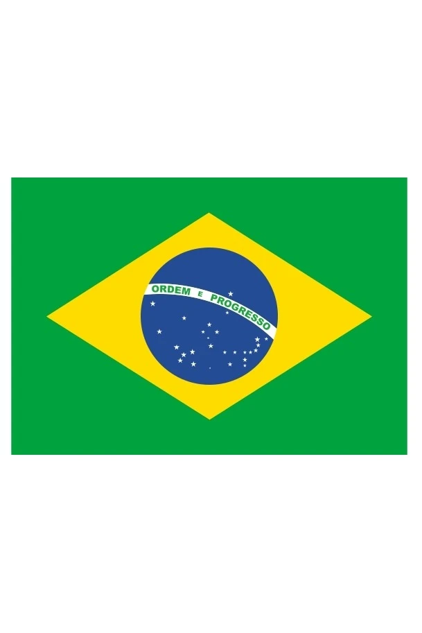 Флаг Бразилии представляет собой прямоугольное зелёное полотнище с жёлтым горизонтальным ромбом в центре. Внутри ромба находится тёмно-синий круг с двадцатью семью белыми пятиконечными звёздами пяти размеров, сгруппированных в девять созвездий. Круг пересечён изогнутой вверх в виде арки белой лентой с национальным девизом Бразилии, написанным зелёными буквами, — «Ordem e Progresso» (с порт. — «Порядок и прогресс»).
