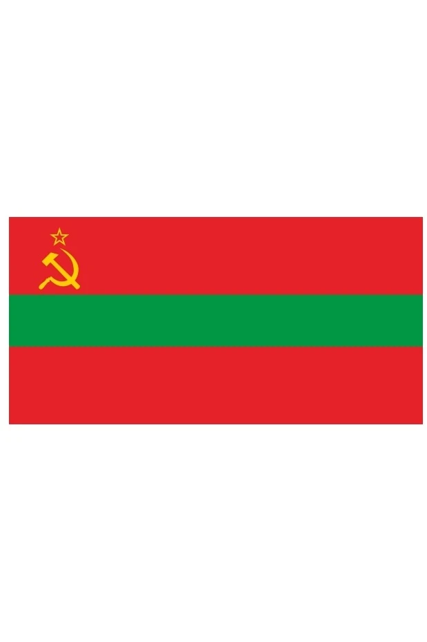Флаг представляет собой прямоугольное полотнище двухсторонне красного цвета. Посередине полотнища каждой стороны во всю его длину располагается полоса зелёного цвета. В левом углу верхней части полосы красного цвета располагается серп и молот золотистого цвета с красной пятиконечной звездой, обрамленной каймой золотистого цвета. Зелёная полоса составляет одну четвертую ширины флага. Отношение ширины флага к её длине — 1/2. Серп и молот вписываются в условный квадрат, сторона которого равна 1/5 ширины флага. Острый конец серпа приходится посередине верхней стороны квадрата, рукоятки серпа и молота упираются в нижние углы квадрата. Пятиконечная звезда вписывается в условную окружность диаметром в 1/10 ширины флага, касающаяся верхней стороны условного квадрата. Расстояние вертикальной оси звезды, серпа и молота от древка равняется 1/4 ширины флага. Расстояние от верхней кромки до центра звезды — 1/10 ширины флага.